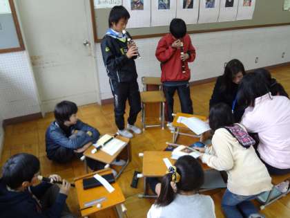 今日の学習では,イメージをどのような音で表現していくのかを班で話し合いました。