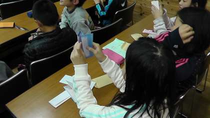 家族への手紙を書くと思っていた子どもたち。サプライズで、ぎゃくに家族から手紙を受け取ると、驚きの声をあげてました。よんでいるうちに、涙する子どもも多く、いつもは当たり前と思っている家族の愛情のありがたさを感じていたようです。そのあと、家族への今の思いをはがきに書いて送りました。