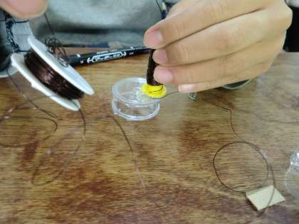 小さいプラスチックにコイルを巻くのが大変でした。