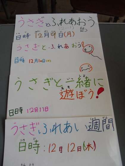 その温かいうさぎに触れ合う『うさぎふれあい週間』を2年生を対象に9日(月)〜13日(木)に行います。