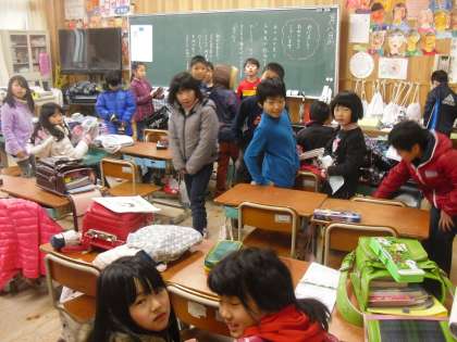 久しぶりに会う友だちとクリスマスのプレゼントが何だったとか,お正月どう過ごしたとかお互いに笑いあう姿が見られました。