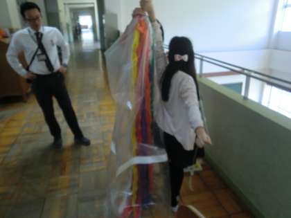 全校児童の平和への思いを乗せた千羽鶴が,今飛び立ちます。