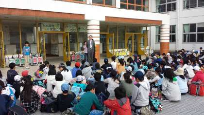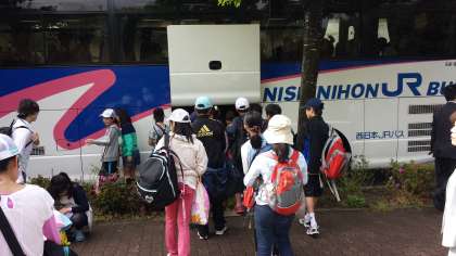 昨日の雨が嘘のようによい天気になりました。待ちに待った修学旅行です。いつもより早くて少し眠たそうですが、元気一杯です。では、いってきます!