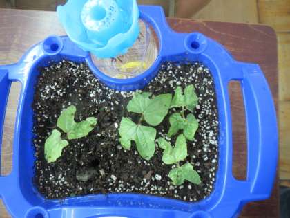 みんなでまいたあさがおの種が,毎日お水をやるうちに成長し,早くもふたばになりました。