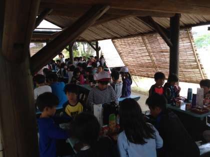 昼の暑さに比べると朝は少し肌寒い感じがします。朝食も昨日の晩御飯を食べた場所「あづまや」という場所で食べました。食事係を中心に昨日よりも早く準備ができるようになりました。二日目も予定通りで活動を進めていきたいと思っています。