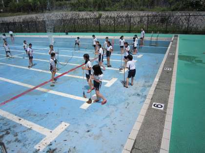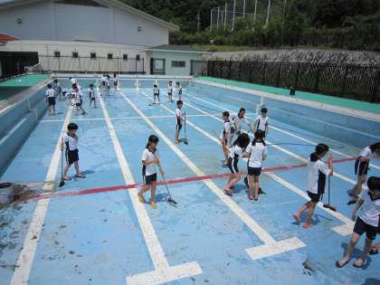 6月中旬からのプール学習開始に向けて,6年生がプール清掃をしました。