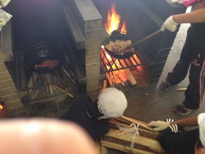 みんなが楽しみにしていた一つの活動の野外炊事が終わりました。それぞれの班を分担しておいしいカレーを作ることができました。自分たちで一から十までやると味のおいしさだけではなく,達成感も味わえて,よりおいしく食べられたようです。普段ご飯をあまり食べない子もご飯をもりもり食べているのを見るととてもうれしかったです。