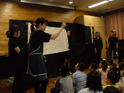 ふれあいルームが真っ暗になり,お話が始まると子どもたちはお話の世界に引き込まれて黙って聞いていました。