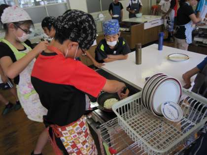 子どもたちは,教室でビデオ学習等をした後,家庭科室でちぢみ作りをしました。