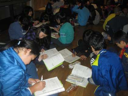 ナイトハイクの後は,みんなで一日のふりかえりをしました。明日,明後日と一日を振り返り次の日がよりよく活動できるようにしていきます。ただいま,「協力」真っ最中です。