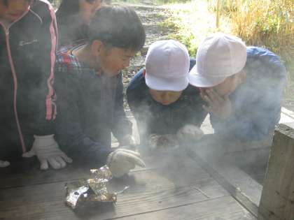 「協力」した活動が続いています。みんなで火おこしに挑戦しました。「火をおこすのってこんなに大変なんだあぁ〜」という言葉が,子どもたちの口から自然とこぼれていました。さぁ〜次はいよいよカレー作りです。