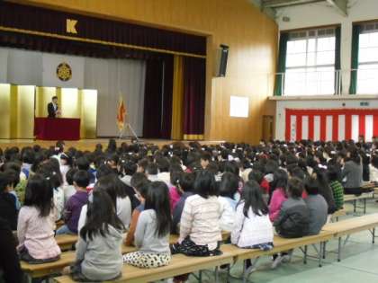今日から新年度がスタートしました。2年生以上の子どもたちは一つずつ学年が上がり,気持ちも新たに元気に登校してきました。着任式で新着任の教職員の紹介が行われた後,始業式が行われました。新しいクラスと担任の先生も分かり,子どもたちは明日からの学校生活を楽しみにしている様子でした。