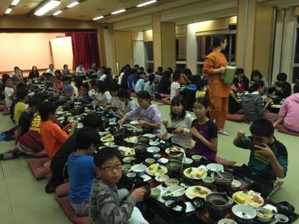 子ども達は今日一日の楽しかった話をしながら、明日に向けてモリモリ食べています。