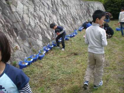 今年は5月に入っても寒い日が続きましたが,ようやく太陽が顔を出してくれるようになりました。理科でツルレイシを植えました。一人一つぶ、大切に種を植えました。大きくなってくれるといいですね。