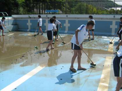 藻や泥で汚れていたプールも6年生の力でピカピカになりました。