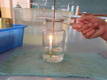 『ものの燃え方』の単元で,空気に含まれる3種類の気体について考え,実験しました。