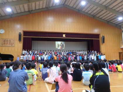 今日は平和集会がありました。本とお話しの会の方々から読み聞かせを聞き,その後6年生の発表でした。