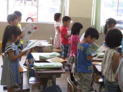 1年2組では,「ひらいた ひらいた」をみんなで歌っていました。
