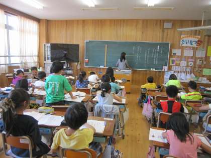 3年2組では,国語の時間に「こまを楽しむ」という教材文を使って学習していました。