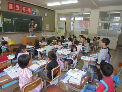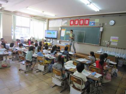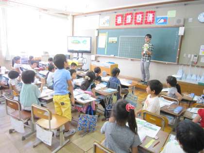 1年2組では,算数で「ふえると いくつ」を学習中です。