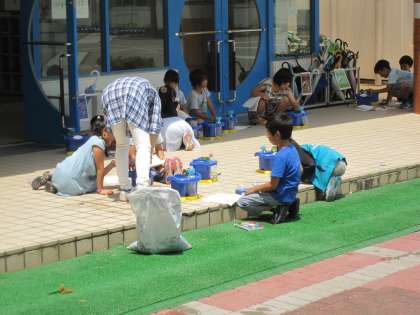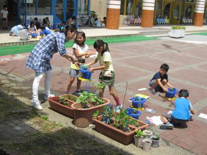 今日の1組は,その「オクラ」の観察と水やりをしていました。
