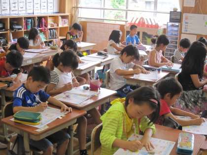 3年生は,ローマ字の練習をしていました。wa o nやga,za,da,baの練習をしたりしていました。