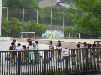 集いの広場においているアサガオの植木鉢の観察をしていました。