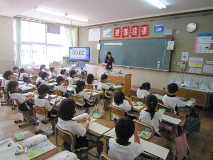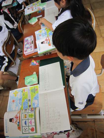 1年生は,「かたちをうつしてえをかこう」というめあてで算数の時間に学習していました。
