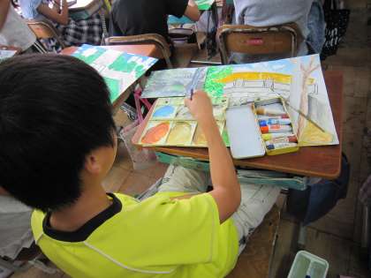 6年生は,修学旅行の思い出を絵にしています。