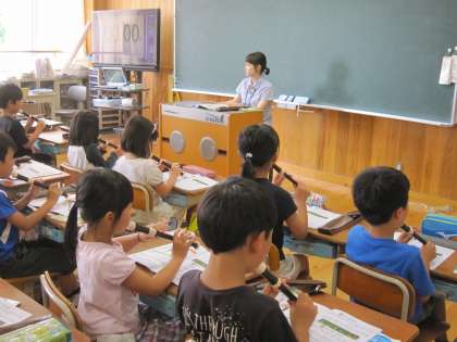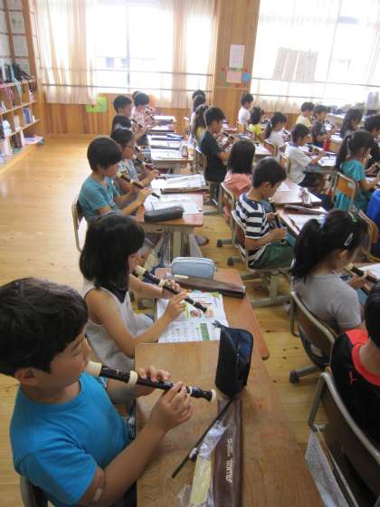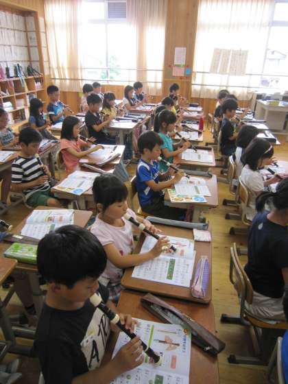 3年3組では,音楽の時間に「ソの音を出そう」という練習をしていました。