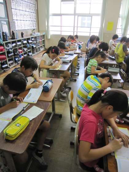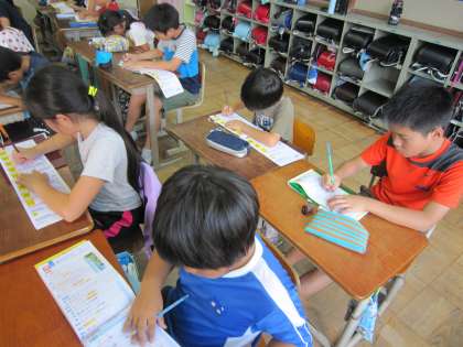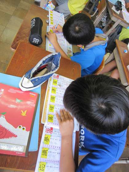5年3組では,新しく学習する漢字をドリルを使って練習していました。