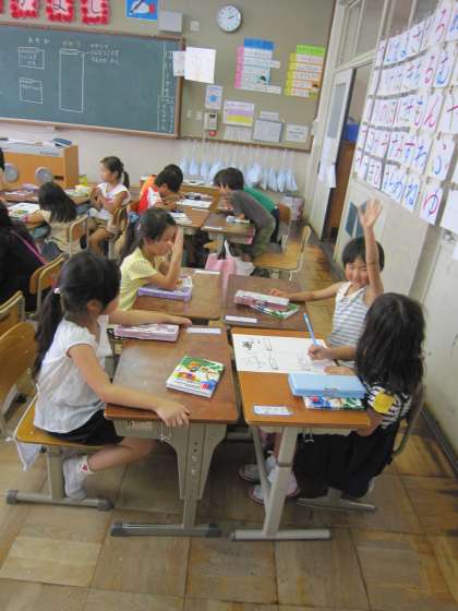 1年4組では,「かかりのポスターをつくろう」というめあてで活動していました。