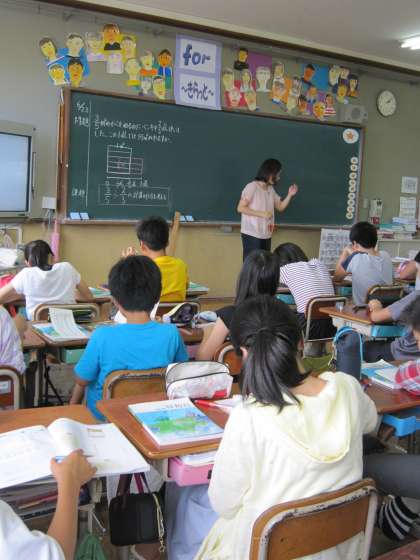 今日の4組は,「3/5÷2/3の計算の仕方を考える」というめあてで学習していました。