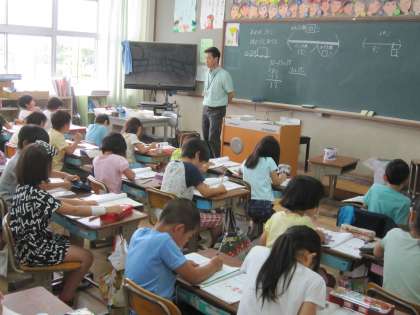 2年3組では,算数の時間にひき算の練習に取り組んでいました。