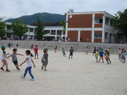 たくさんの子どもたちが運動場で楽しく過ごしていました。