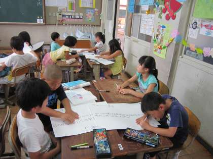 子どもたちは,どんなクイズにしようかと考えていました。
