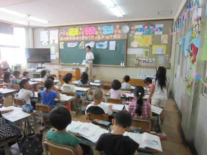 2年3組では,「大きな魚をおいだしたスイミーに言葉をかけよう」というめあてで学習していました。