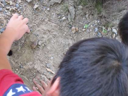 なんだろうと見にいくと小さな穴が地面に開いていて,子どもたちが覗き込んでいました。