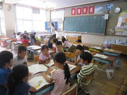 1年3組では,「おおきなかぶ」の音読に取り組んでいます。今日は,音読の役割を決めようとしていました。