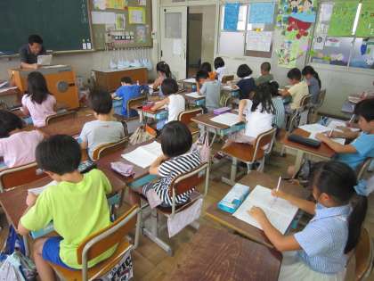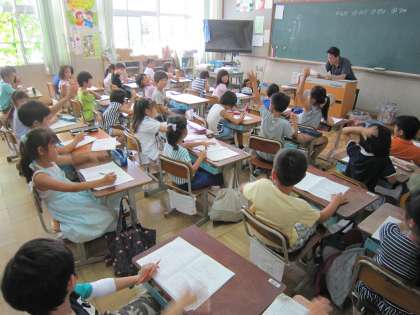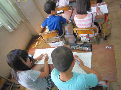 2年3組では,算数の時間に「大きな数」についてのプリントの答え合わせをしていました。