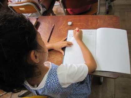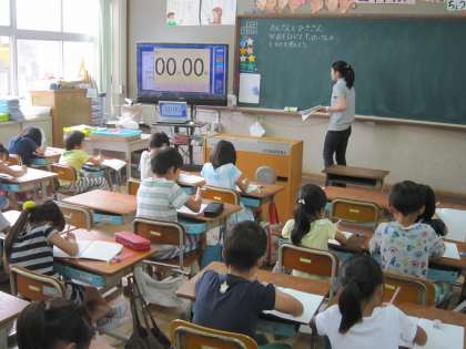 2年1組では,算数の時間に「たしざんとひきざん」について学習中です。今日は,「10をもとにして,計算の仕方を考えよう」というめあてをもって学習していました。