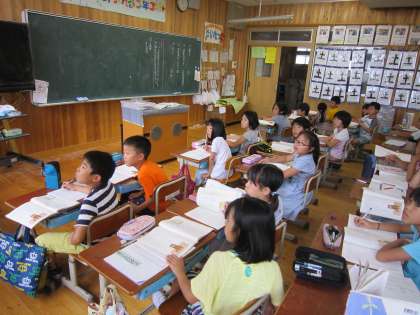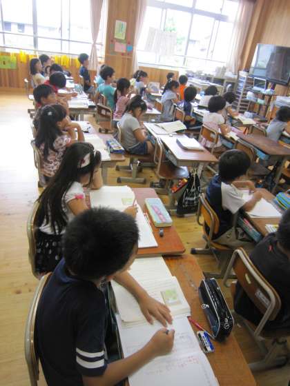 3年3組では,国語で「もうすぐ雨に」という教材を使って学習しています。今日の3組では,「ふしぎな出来事がおきたときの『ぼく』のこうどうから気持ちの変化を読み取ろう」という課題で学習していました。今日考えるところに「網戸」という言葉が出てきていたので,窓を使って説明をしたりしていました。