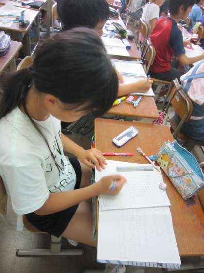子どもたちは,学習の中で実際に方眼紙にかかれた円の面積を数えていました。
