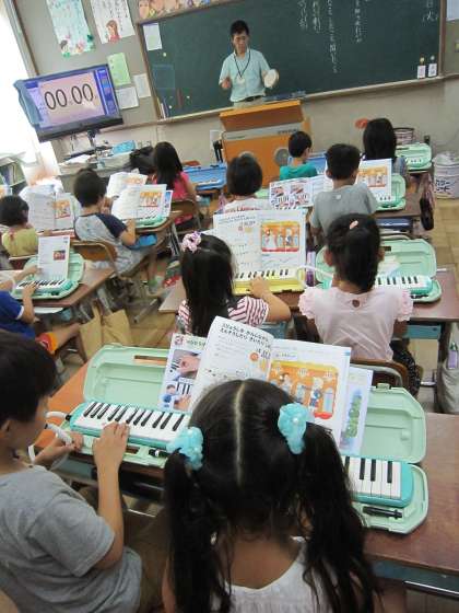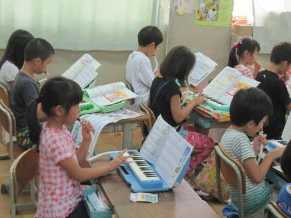 2年3組では,鍵盤ハーモニカを使って「かっこう」を演奏していました。