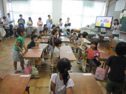 1年4組では,道徳の時間に「りんごがひとつ」というお話を使ってみんなで考えていました。