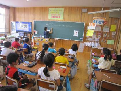 3年2組では,図工の時間に「ゴムの力で」というテーマで作った作品について,「自分や友達の作品について考えたことや感じたことを書こう」としていました。
