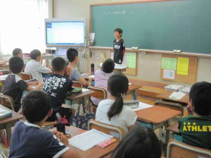 5年1組では,一人ずつ前に出て自分の思い出を発表していました。