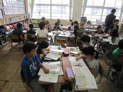4年2組では,社会科の時間に「火事が起きたら」というテーマで話し合っていました。