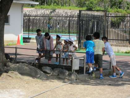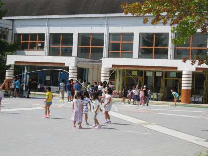 長縄とびをしている子たちや観察池を見ている子たちがいました。