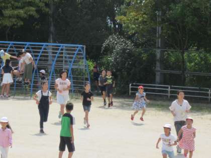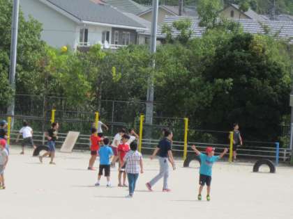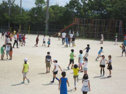 暑い日になりましたが,子どもたちは運動場に出て,楽しそうに体を動かせています。